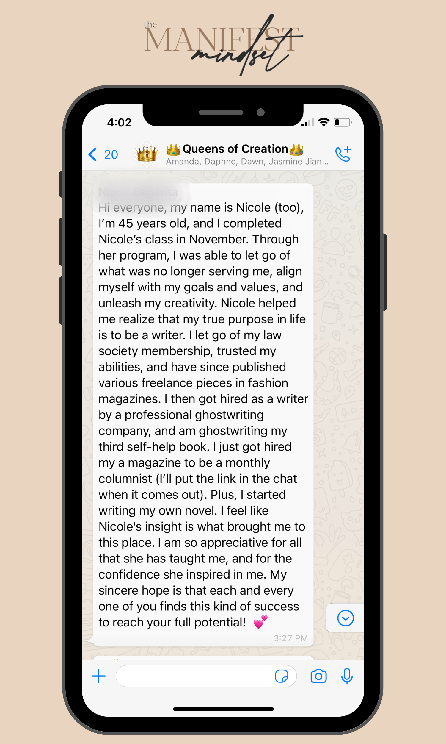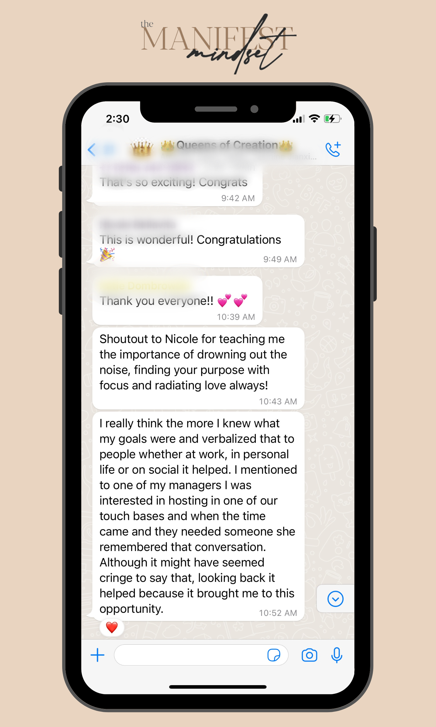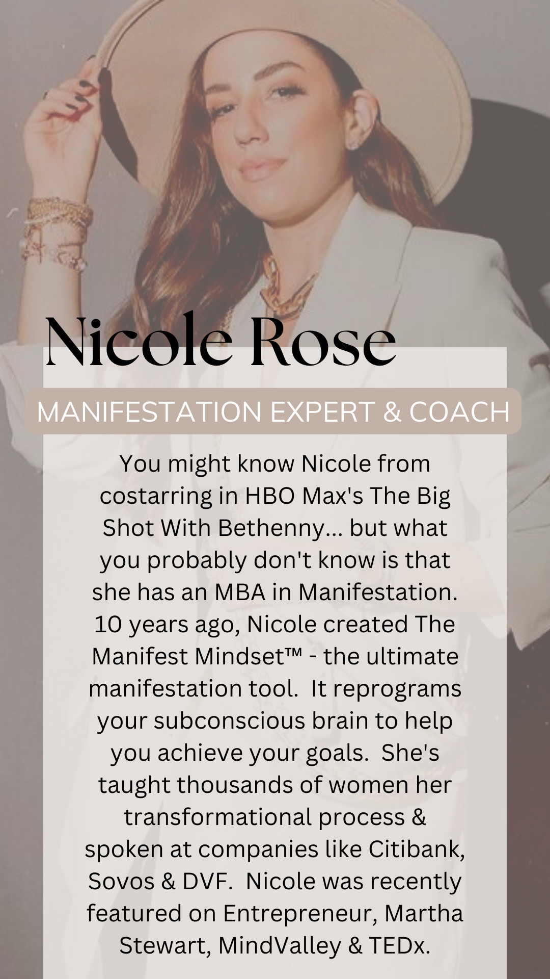 DISCLAIMER: The Manifest Mindset™ is property of Rose Holdings, LLC. The results you'll see from testimonials on this page are not always standard. They are testimonials from their own personal experiences and should not be considered as a guarantee. We want nothing more than for our clients to succeed but unfortunately, we can't guarantee that individuals will actually do the hard work necessary to become successful. Joining our program doesn't guarantee anything. The manifestations stated anywhere on this page are individual outcomes and results. Please understand that these results are not typical, and we are not implying that you will duplicate them. The average person who simply purchases any “how-to” program may not follow through on what they are being taught and because of that we cannot guarantee any specific result. We are using these references for example purposes only. Results will vary and depend on many factors including but not limited to background, experience, time allocation, work ethic and more. All investment in personal development entails some sort of risk as well as massive and consistent effort and action. If you’re not willing to accept that, this is not for you.
